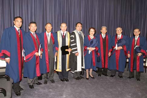 香港大學(港大)在今天(12月15日)舉行名譽大學院士銜頒授儀式,並由港大副校監李國寶博士主禮。 今年,港大向八位傑出人士頒發名譽大學院士銜,以表揚他們對大學及社會的貢獻。獲得名譽大學院士銜的人士包括陳曾燾博士、鍾健國先生、方潤華博士、劉秀成議員、李健鴻教授、伍沾德博士、胡應洲醫生及施玉榮夫人。[以下為各名譽大學院士之履歷] 在典禮上,港大校長<>徐立之教授表示,港大透過這個創立於一九九五年的榮譽,不但向那些對大學發展極為支持的人士表達謝意,更希望藉此加強及擴大港大與社會各界的聯繫。 徐教授最後讚揚各院士為社會及大學所作的貢獻,也為一輩樹立典範:「院士們為我們展示了模範公民的典型:以實際行動體現對教育的投入及熱誠,和對社會福的重視。」 新聞媒體如有任何查詢,請致電2859 2606與香港大學外務處張美娟小姐聯繫。 如欲參閱頒獎典禮之照片,可瀏覽港大網址傳媒頁中相片廊(Photo Gallery)的活動篇(Events) http://www.hku.hk/hkumedia/。 今年獲頒授名譽大學院士銜的八位傑出人士分別為: 陳曾燾博士 陳曾燾博士為傑出企業家及地產發展商,於1997年創立思源基金會,致力貢獻國家及香港的高等教育發展,1995年起出任香港大學教研發展基金創會名譽會長。陳博士於1948年在復旦大學畢業,並於1960年代來港發展,陳博士為恒隆集團創辦人之一,先後擔任該集團的董事、董事總經理及主席職位,至1990年止。他亦曾任基本法諮詢委員會委員、香港聯合交易所理事、證券及期貨事務監察委員會董事及香港中央結算有限公司主席,積極投入香港公共服務,對社會貢獻良多。 鍾健國先生 鍾健國先生為年青有為的工業家,積極推動內地、香港及國際間教育發展,多年來頒發數以百計的獎學金資助國內研究生前往英國諾定咸大學修讀,對國家經濟繁榮貢獻良多。鍾先生並致力鞏固非洲萊索托王國及國家的學術交流。鍾先生現為香港大學教研發展基金的名譽贊助人,不遺餘力推動港大的發展。他亦是萬都發展有限公司主席,房地產及投資業務遍及全國。 方潤華博士 方潤華博士是著名慈善家,現任協成行集團主席、方樹福堂基金主席及方潤華基金主席。方博士秉承其家族樂善好施的精神,不遺餘力促進內地及香港的教育發展,香港大學方樹泉文娛中心就是為紀念其父對港大的支持而成立。方博士多年來慷慨捐獻,在內地建成數十間學校,讓貧困的內地學童獲得教育機會。方博士善心廣布,備受香港及國際摧崇,除獲得多個國家及學術機構頒予名譽博士學位及名譽市民獎之外,香港政府亦向他授予銀紫荊星章,國際小行星委員會亦將其中一顆小行星以其名字命名。 劉秀成議員 劉秀成議員是著名建築學家,於1973年至2004年期間在香港大學建築系任教,並於1996至2000年出任建築系系主任,他亦是在任最長的大學權杖員。劉教授除熱衷教學外,亦參與許多建築設計比賽,屢獲獎項。劉教授為現任立法會議員,他亦擔任多項公職,包括香港貿易發展局基建發展諮詢委員會主席,以其專業回饋社會。2000年他獲政府頒授銀紫荊星章以表揚他對社會的貢獻。 李健鴻教授 李健鴻教授服務香港醫務委員會多年,是婦產科及公共衛生健康的先鋒,李教授精於研究胎兒毛病,並經常現身香港電台「醫生與你」的節目,向大眾講解醫學常識。李教授曾在港大婦產科學系任教,1998年起又擔任名譽臨床助理教授。李教授積極支持母校發展,並透過擔任畢業生議會常務委員會及校董會的成員,為大學的教研發展作出貢獻。 伍沾德博士 伍沾德博士為美心集團主席,在香港、內地及國際間致力傳揚中國飲食文化。伍博士於四十年代在廣州嶺南大學畢業,多年來,致力推動香港及內地的高等教育發展,在他積極勸說之下,國家教育委員會於1988年重新成立廣州中山大學之嶺南(大學)學院。他現時為該院的發展及計劃委員會主席及其信託委員會的名譽主席,致力培育南中國專業管理人才。伍博士亦是美國麻省春田大學及廣州中山大學的名譽博士,2001年獲香港政府頒授銀紫荊星章。 胡應洲醫生 胡應洲醫生生於慈善之家,其父為胡忠先生,兄弟胡文瀚、胡應湘、胡應濱均積極為公眾服務。胡醫生早年在美攻讀,是心臟科專家,現任哥倫比亞大學信託人執行委員會兼健康科學委員會的委員。胡醫生雖然長期留美發展,他對港大醫學教育發展十分關心,多年來透過家族支持大學成立多項研究基金,成立訪問學人教席及獎學金等,以促進港大與內地及美國的醫學院和大學,開展研究合作。 施玉榮夫人 施玉榮夫人植根香港,其家族與港大淵緣深厚,父親為港大名譽博士羅旭和爵士,丈夫為馬禮遜堂宿生已故施玉榮先生,施玉榮夫人秉承兩個家族樂善好施的傳統,對香港及香港大學的發展作出了重大的貢獻。為紀念施玉榮先生而成立的施玉榮基金,致力推動教學及科研工作,於2002年在香港大學成立施玉榮心臟專科中心,於2005年資助矯型及創傷外科學系的研究項目。 圖片說明: 圖片1: 左起:劉秀成議員、鍾健國先生、陳曾燾博士、港大副校監李國寶博士、港大校長徐立之教授、施玉榮夫人、方潤華博士、伍沾德博士及李健鴻教授(胡應洲醫生未能出席今天典禮) 圖片2二: 陳曾燾博士、鍾健國先生、方潤華博士、劉秀成議員、李健鴻教授、伍沾德博士、施玉榮夫人、港大副校監李國寶博士、港大校長徐