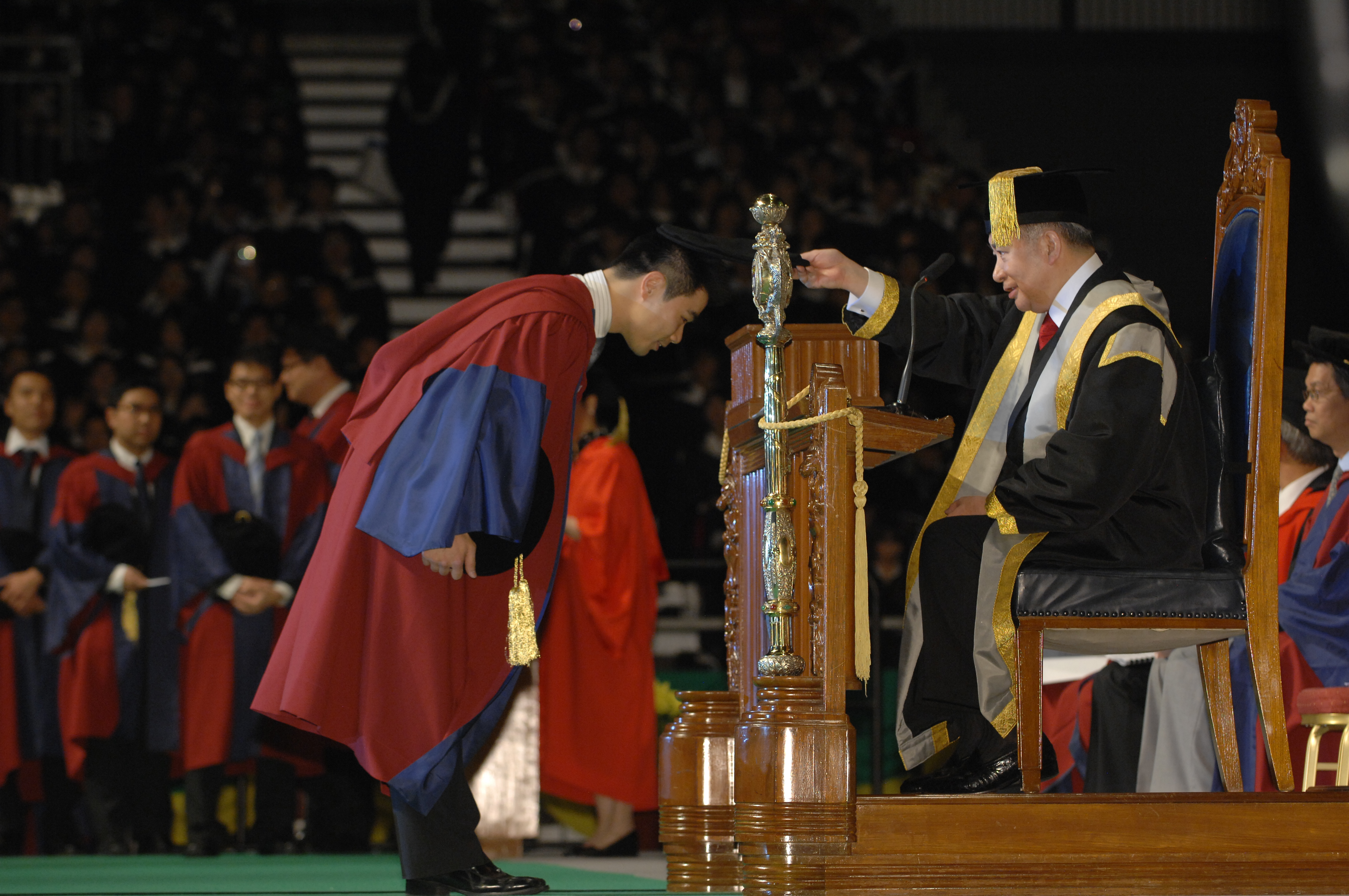 港大副校監李國寶博士主持學位頒授典禮。 |