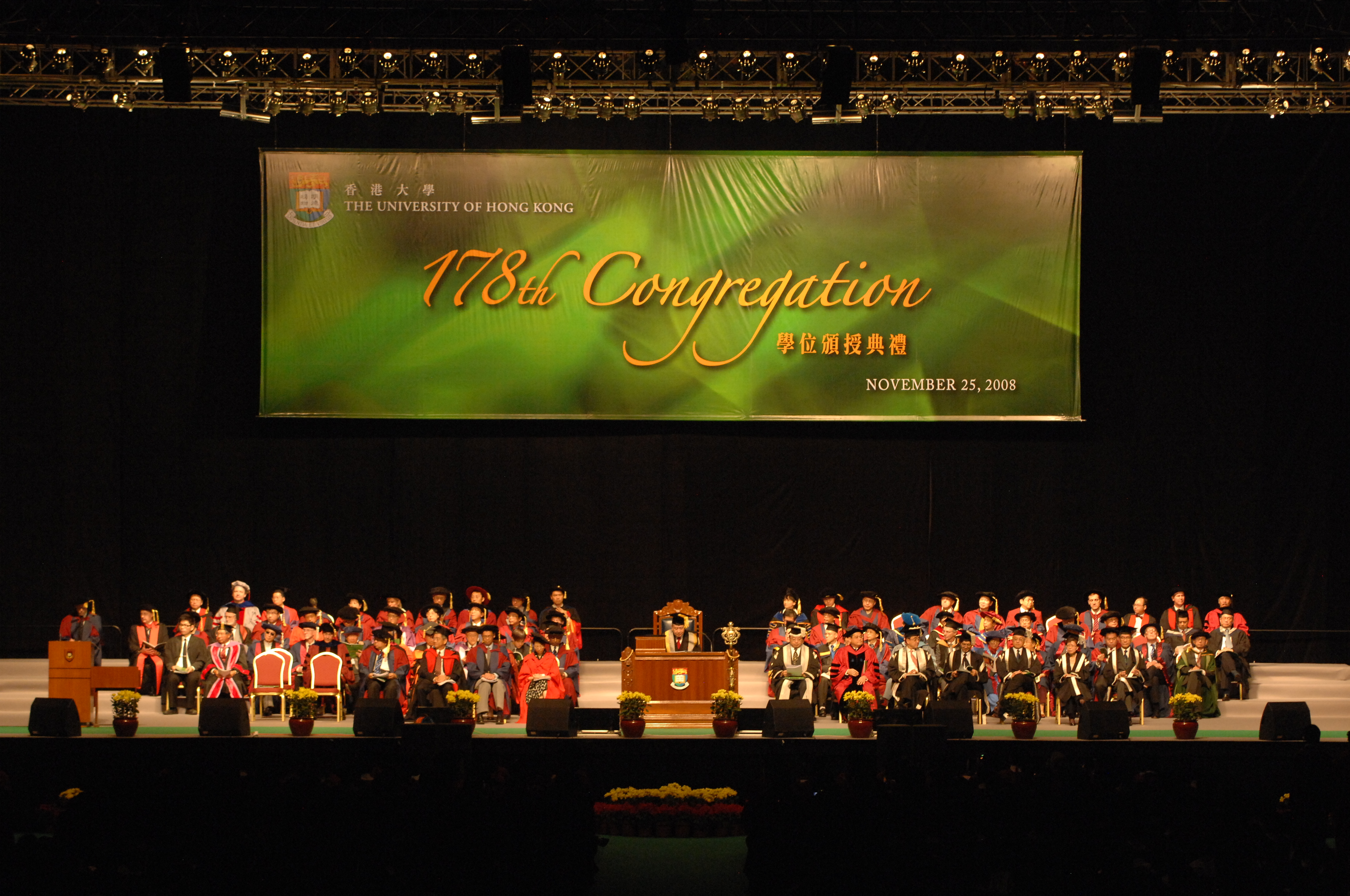 香港大學 (港大) 今年共有6,636名畢業生獲頒學位,港大今天(十一月二十五日) 於亞洲國際博覽館舉行第一百七十八屆學位頒授典禮。本屆畢業生當中,338人獲博士級學位,2,959人獲碩士學位;至於學士學位畢業生則有3,339人。典禮由港大副校監李國寶博士主禮。 港大校長徐立之教授在典禮上致辭時,代表港大向一眾畢業生衷心祝賀。他勉勵同學雖然在非常困難的經濟時期踏進社會,但「一定要對自己有信心」,因為他們已得到全港最佳的大學教育為他們充分裝備。