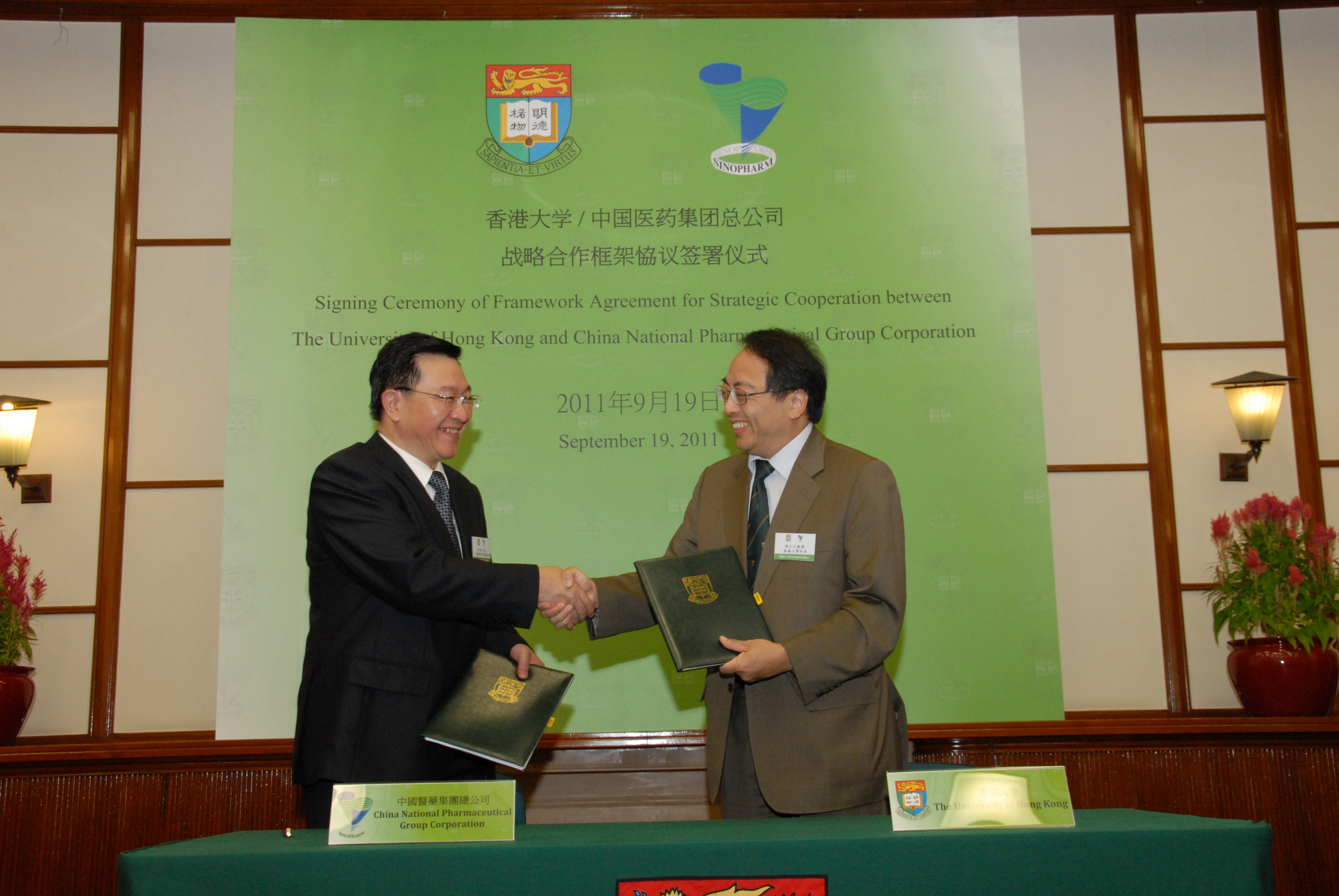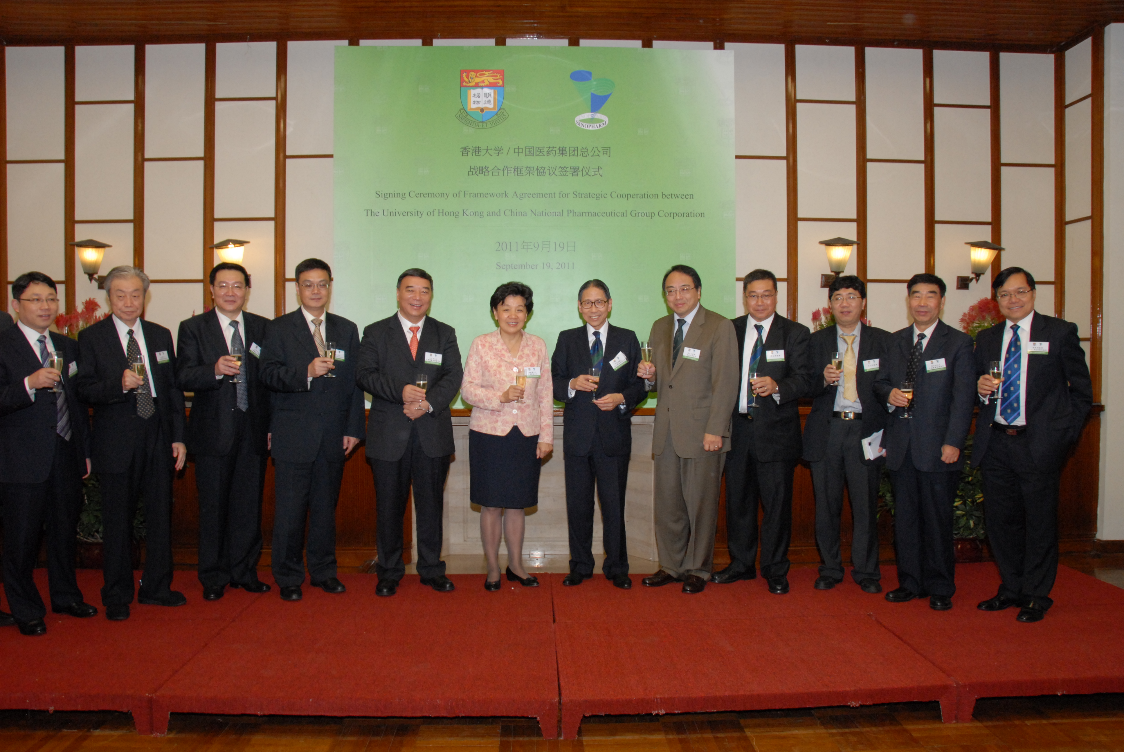 香港大學校長徐立之教授和中國醫藥集團總經理佘魯林先生分別代表雙方簽署戰略合作協定。中央人民政府駐香港特別行政區聯絡辦公室副主任殷曉靜,港大校務委員會主席梁智鴻和相關項目的教授及負責人,以及中國醫藥集團董事長宋志平,和其他集團董事﹑下屬部門及企業的負責人蒞臨,共同見證此歷史性時刻。