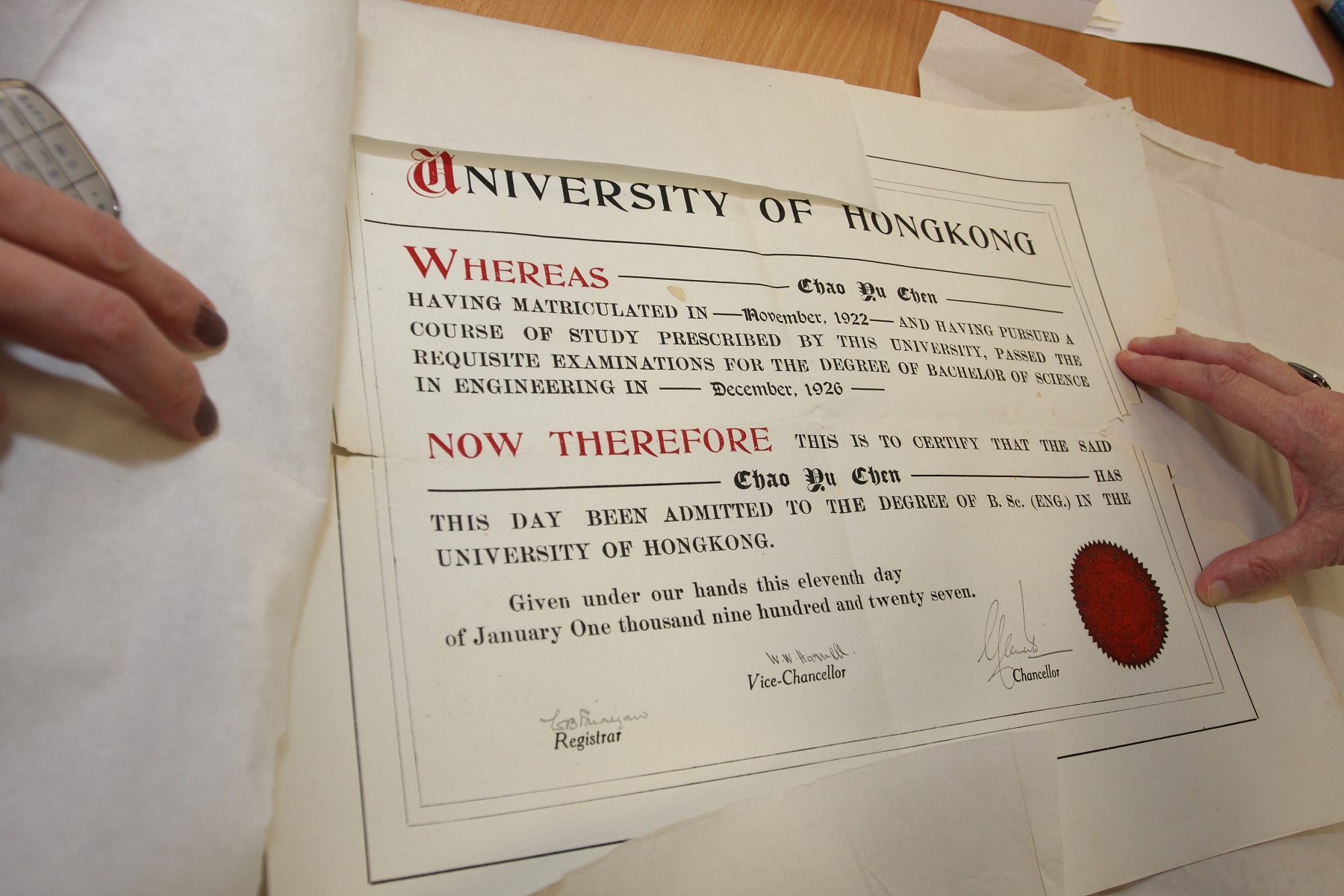 賀港大一百年/港大工學院最古老畢業證書回歸 前天津大學副校長 畢業證書回歸母校/已故老校友感念母校