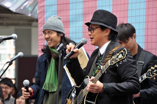 許冠傑聯同十多位港大學生合唱《明我以德》 |