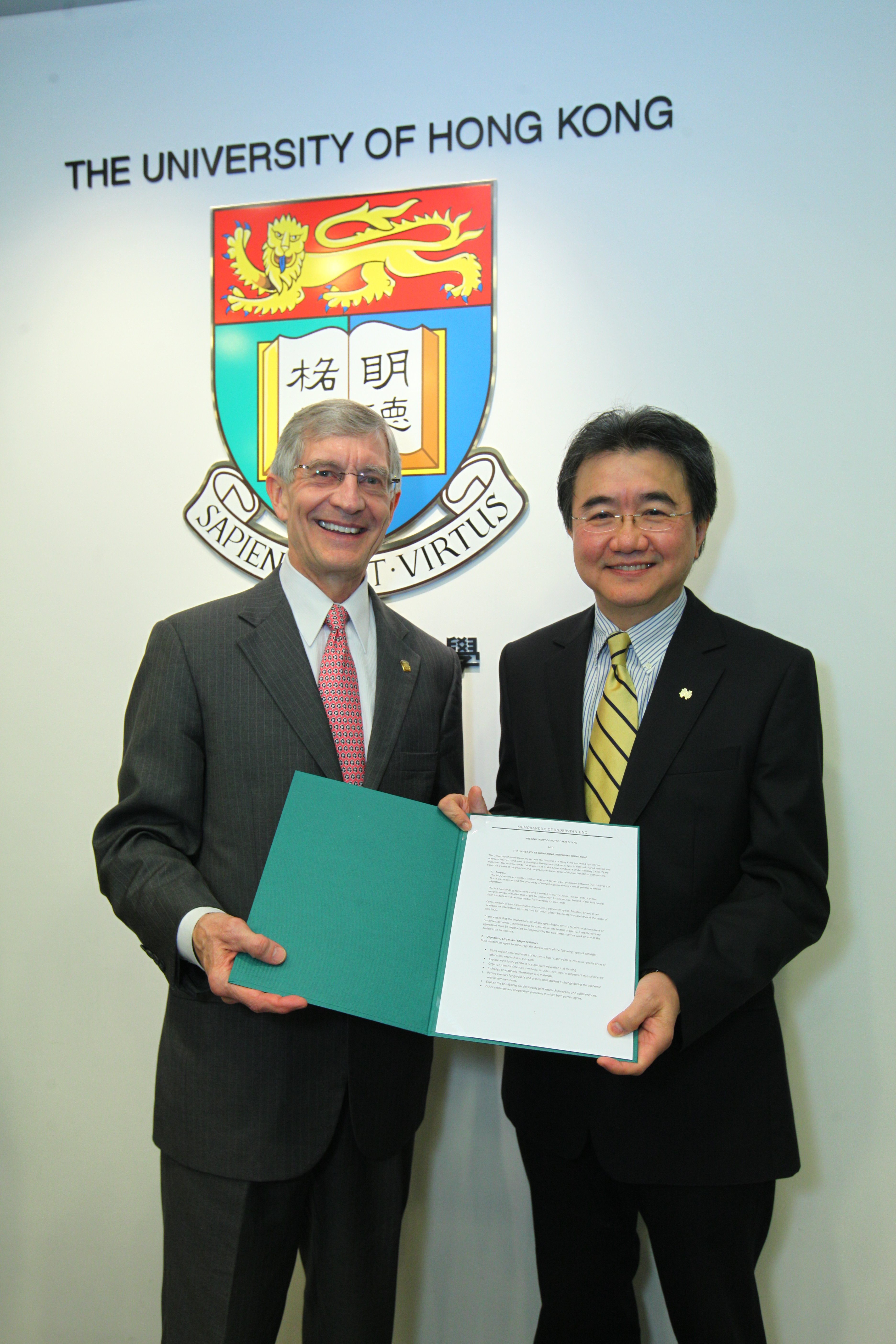 香港大學(港大)與美國聖母諾特丹大學今天(3月12日)簽訂合作協議,由2012-13學年開始,每年將頒發獎學金予8名學生,資助他們參與香港大學和美國聖母諾特丹大學之間的交流活動。
