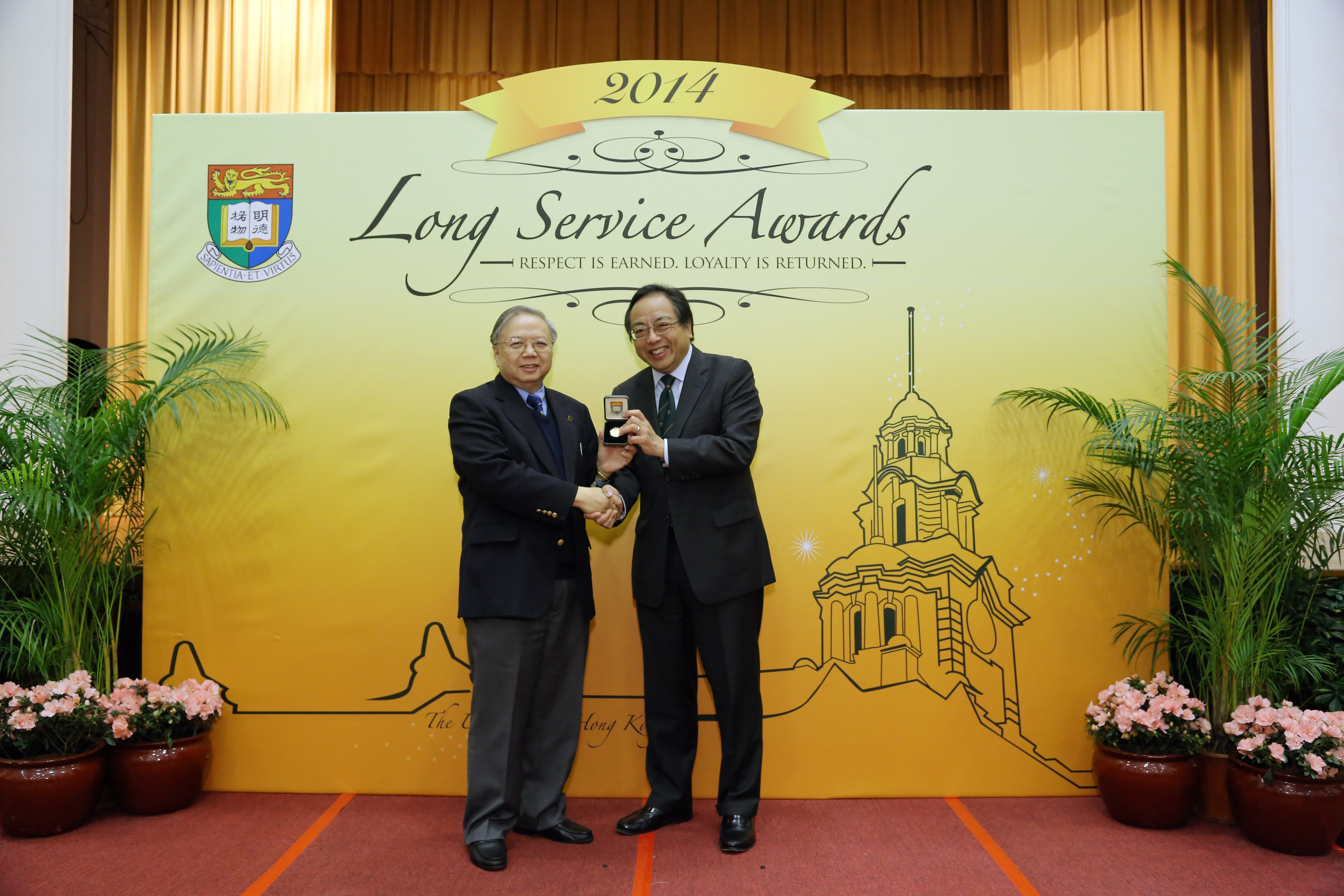 HKU Registrar Mr Henry Wai receives the 40-year award from the Vice-Chancellor Professor Lap-Chee Tsui