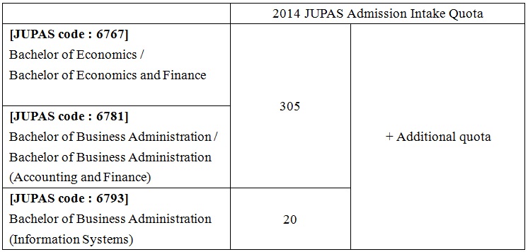 Faculty of Business and Economics of the University of Hong Kong is pleased to announce that sizable additional intake quota has been allocated to three of our undergraduate programmes listed below to admit more “Joint University Programmes Admissions System” (JUPAS) applicants.