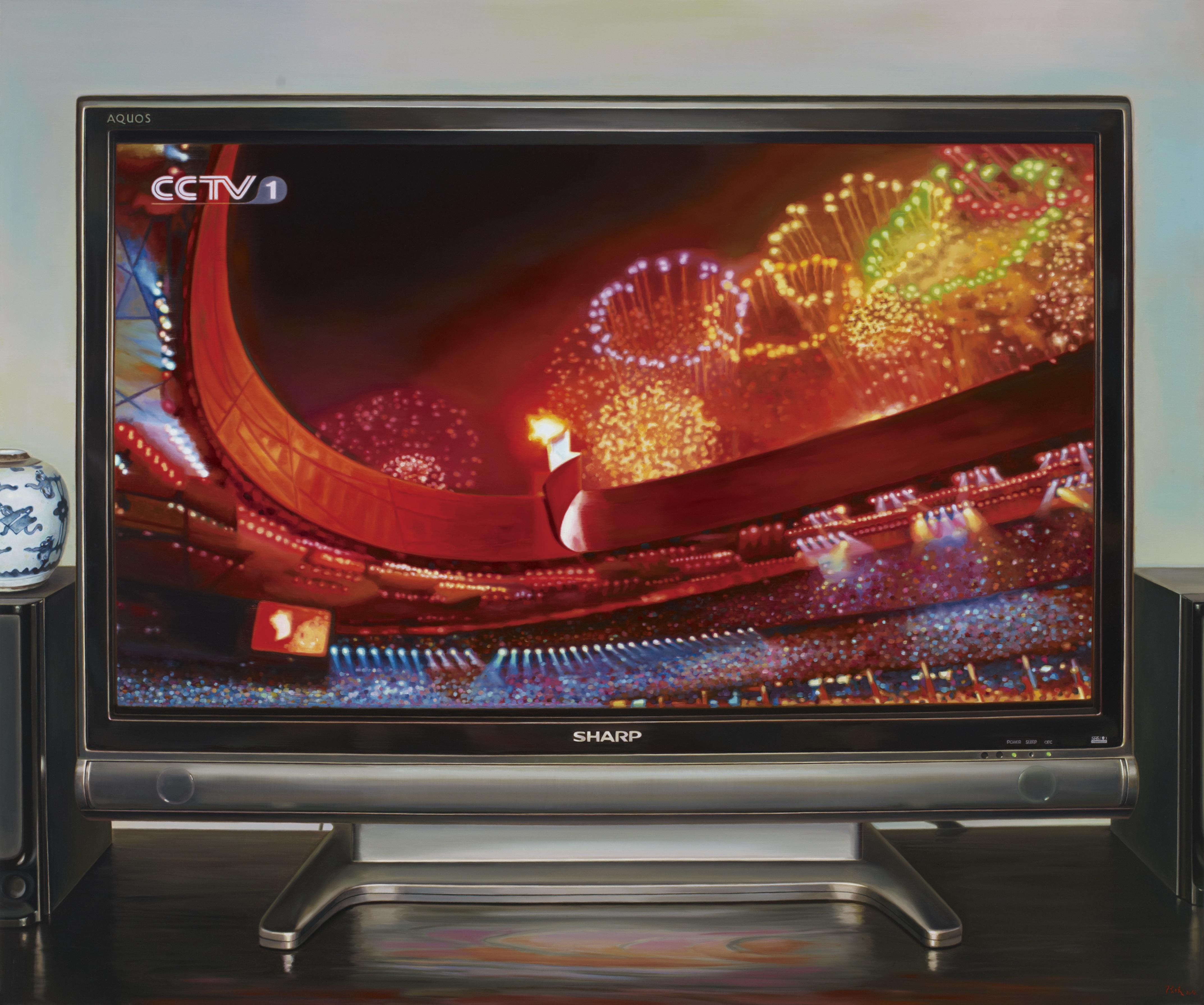 Meticulous in her research and true to both the documented incident and the domestic details, Chen Xi creates historical paintings for our present and future generations. Her method directly relates to contemporary life and to a society that is informed and influenced by modern-day media. Interestingly, the artist does not simply depict a historic event, but frames within a TV screen each episode of her sequential and international narrative. By presenting the paintings within the TV’s glass, they become screen shots linked to a specific moment in time and space, as well as to the living room setting where the news would have been seen. In addition, the exhibition includes four early paintings that relate to the TV series and Chen Xi’s development as an artist.