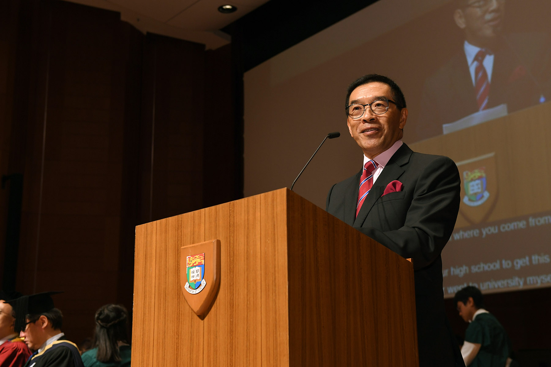 Mr Carlson Tong, Chairman of the University Grants Committee, was the Guest of Honour at the ceremony. Other HKU members attending the event included Dean of Student Affairs Dr Eugenie Leung, Chairman of Convocation Dr Patrick Poon and President of the Hong Kong University Students' Union Mr Wong Ching Tak.