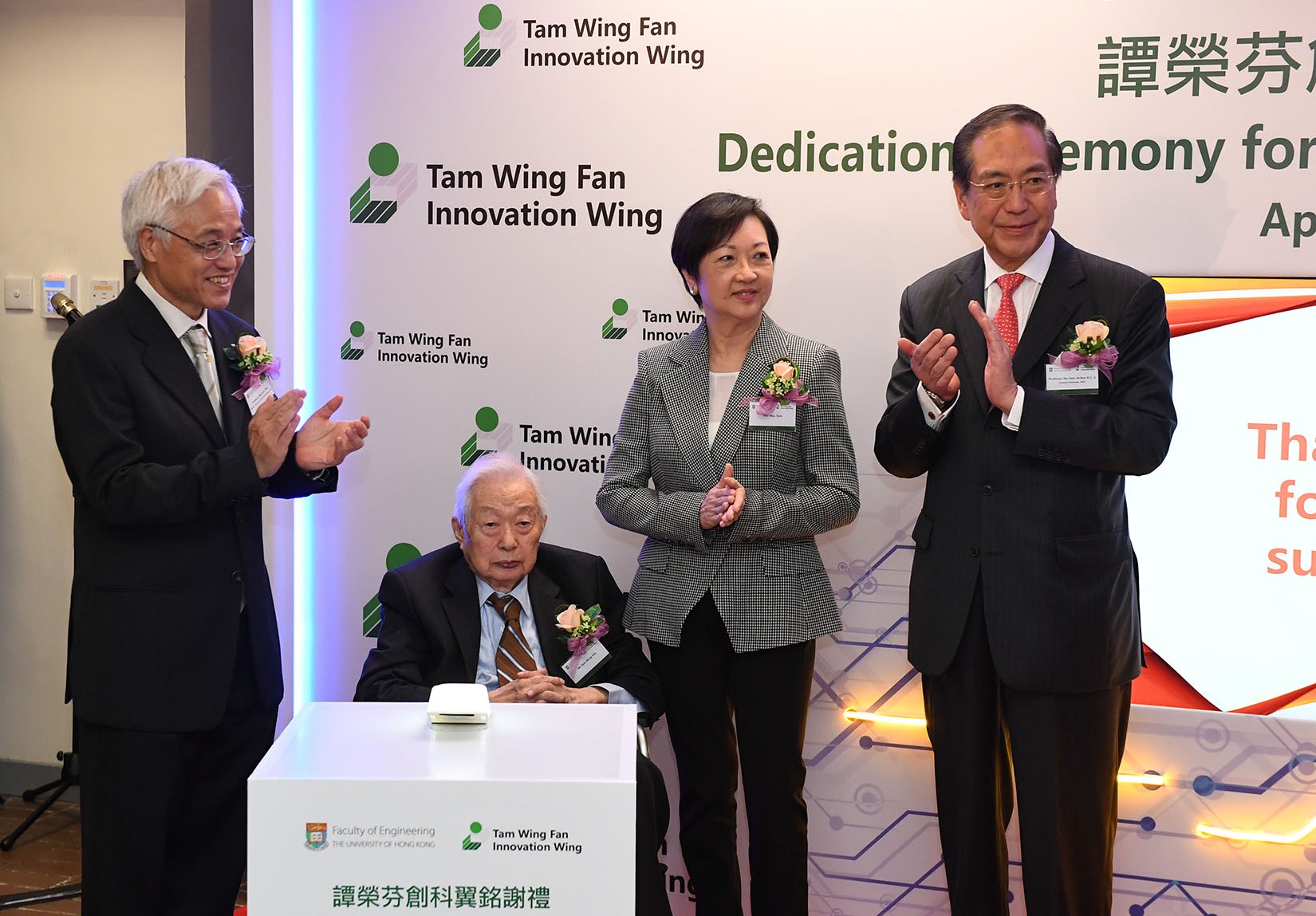 A dedication ceremony was held today (April 27, 2018) for Tam Wing Fan Innovation Wing (Innovation Wing) to honour Mr and Mrs Tam Wing Fan for their very generous pledge to donate HKD100 million to the Faculty of Engineering (the Faculty), the University of Hong Kong (HKU), in support of the establishment of Innovation Wing. This iconic landmark which planned to be completed by 2020 will be the new facility on the main campus to nurture innovation and creativity of our future engineers.