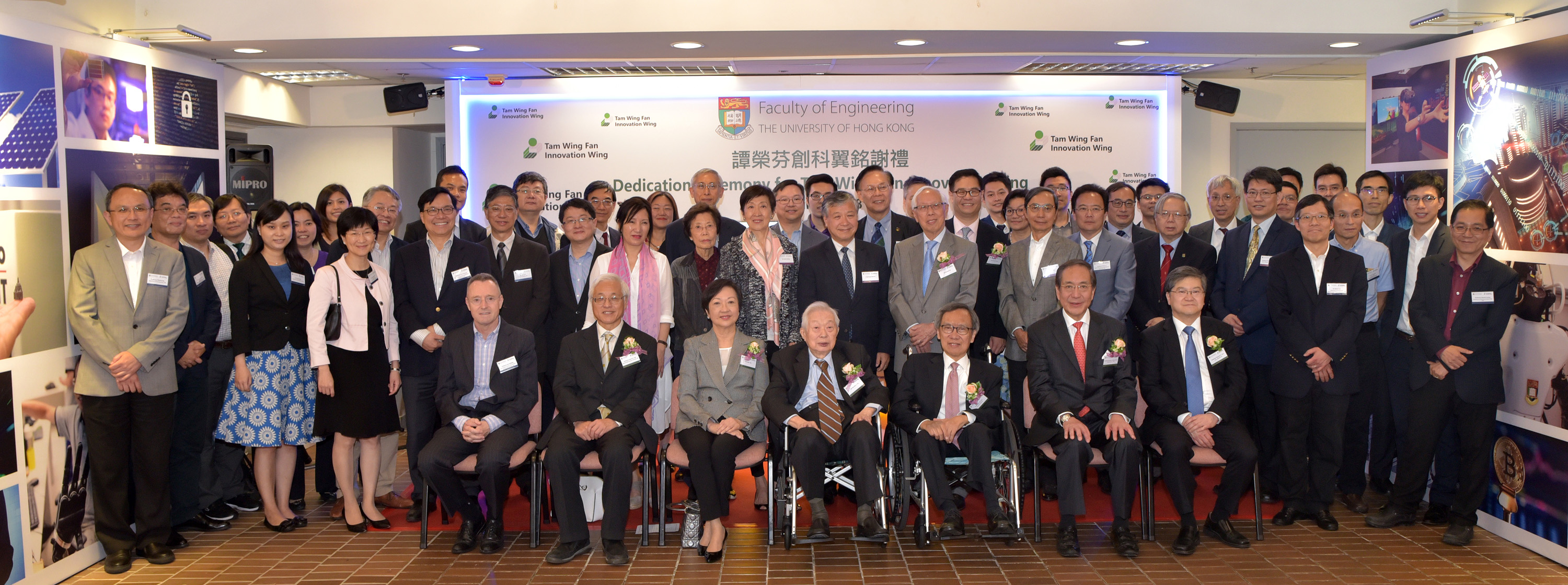 The Ceremony was officiated by the Guests of Honour Mr Tam Wing Fan and Mrs May Tam. Officiating guests also included HKU Council Chairman Professor the Hon. Arthur K.C. Li, HKU Acting President and Vice-Chancellor Professor Paul K.H. Tam, HKU Dean of Engineering Professor Norman C. Tien, Professor T.H. Tse, Mr Edward Ho and Mr Heman Hsuan.