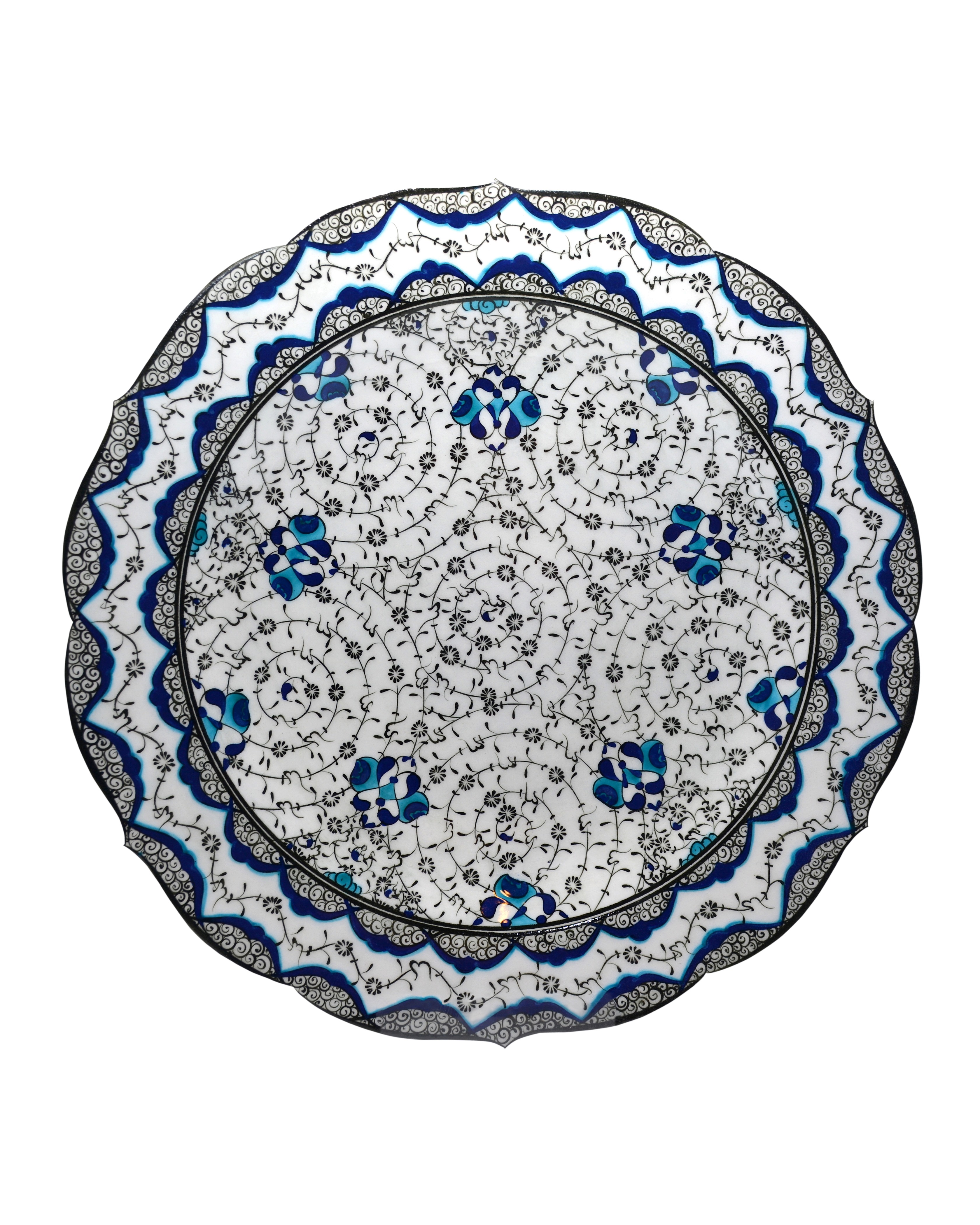 İznik pottery is named after the town of İznik, where these finely decorated ceramics have been manufactured since the last quarter of the 15th century. Local craftsmen developed simple earthenware pottery into a more sophisticated manufacture of high-quality ceramics painted with cobalt blue patterns and coated with a colourless glaze.