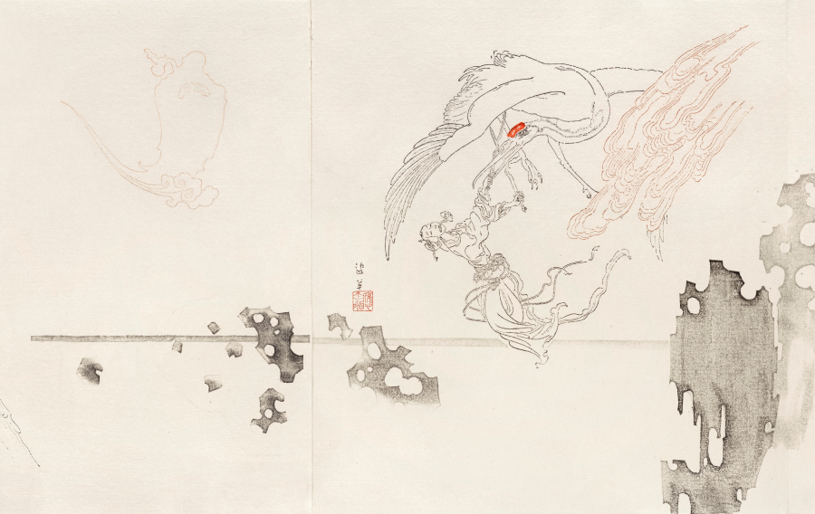 Artworks in the exhibition feature interpretations of the fabled West Lake landscape, including the reproduction of early forms of black-and-white woodblock printing, and the multicolour technique known as douban, developed late in the Ming dynasty. By dividing the woodblock into multiple pieces, the douban artist is able to print multiple colours with only a single block, and to replicate ink-wash painting styles normally associated with delicate brush work. Hybrid landscape constructions that meld European techniques, such as etching, with a definitively Chinese sense of style are also a hallmark of many prints emanating from the West Lake area.