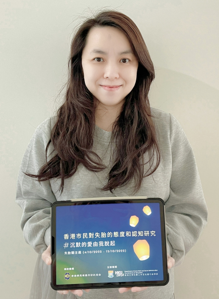 In May 2022, Dr. Celia Chan Hoi Yan, Associate Professor and Deputy Head of the Department of Social Work and Social Administration, who is also the Principal Investigator of JCPBC, conducted an online survey to investigate public attitude and knowledge towards pregnancy loss in Hong Kong, with the aim to examine public understanding of pregnancy loss-related issues and condolence expressions towards bereaved parents in Hong Kong.