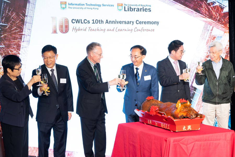 The conference began with an opening address by Professor Ian Holliday, Vice-President and Pro-Vice-Chancellor (Teaching and Learning) at the University of Hong Kong. Professor Holliday introduced Dr LAM Ko Yin Colin, Vice Chairman of Henderson Land Development Co Ltd. and Chairman of the Hong Kong Ferry (Holdings) Co. Ltd., the generous donor who made Chi Wah Learning Commons possible. Professor Ian expressed heartfelt gratitude to Dr Lam for his unwavering commitment to the University and his remarkable generosity. Following the speech, officiating guests led a toasting and roasted pig cutting ceremony to celebrate Chi Wah Learning Commons' 10th anniversary.