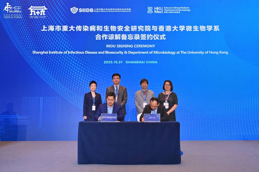 The Department of Microbiology at the University of Hong Kong (HKU) and Shanghai Institute of Infectious Disease and Biosecurity (SIIDB) have entered into a Memorandum of Understanding (MoU) today (October 31) in Shanghai.
