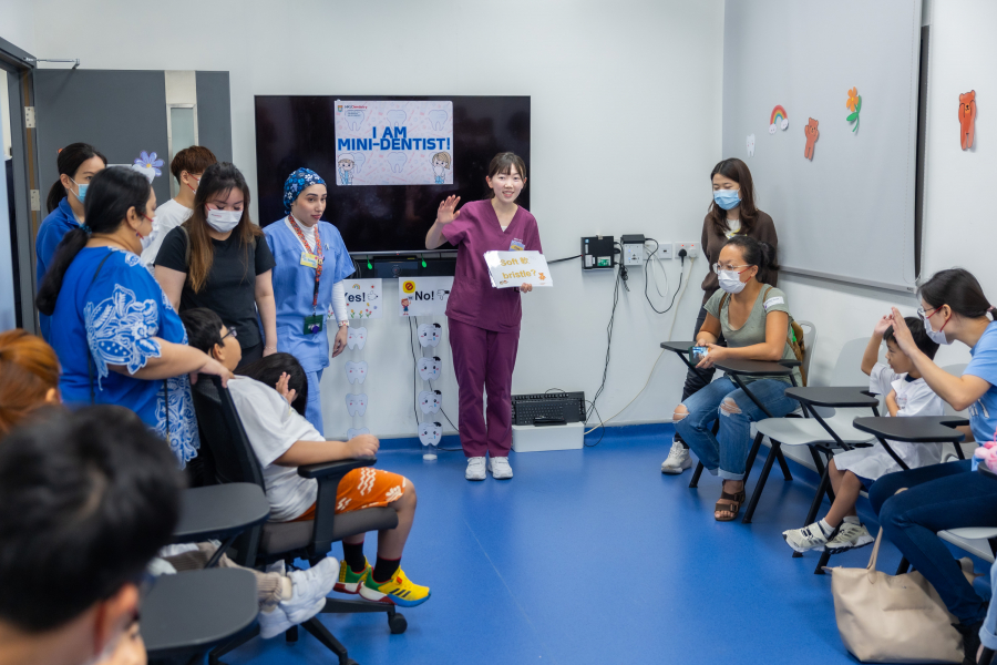 The Institute for Advanced Dentistry – Multi-Specialty Clinic (IAD-MSC) of HKU Dentistry hosted a "Mini-Dentist Experience Day" on 16 November, crafted for children with additional needs. The event, organised in collaboration with the Child Development Centre (CDC), a local NGO providing educational services to children with additional needs, saw the participation of 23 children alongside their parents and resident dentists from the Paediatric Dentistry department at IAD-MSC.