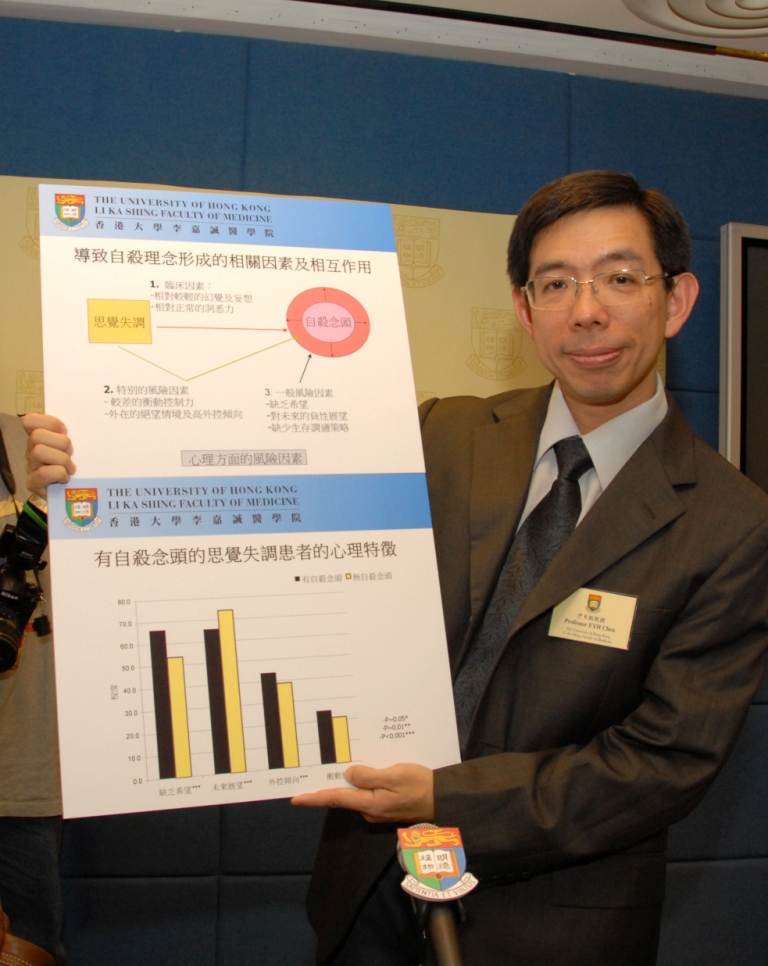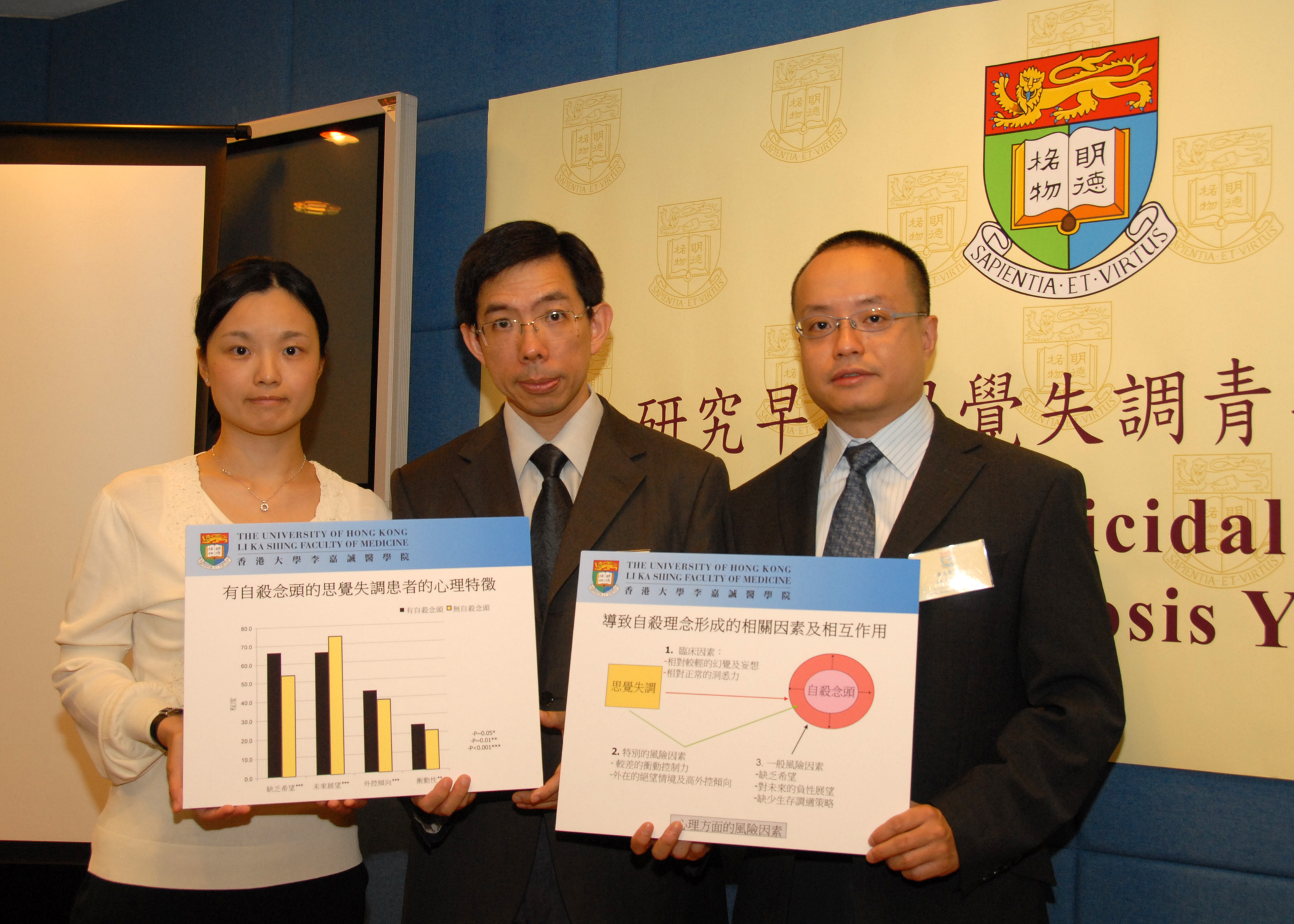The leading researcher of the study, Professor Eric CHEN Yu-hai of the Department of Psychiatry, HKU Li Ka Shing Faculty of Medicine, says, "Some phases during the illness are more prone to suicide, such as during remission from the first episode illness, relapse period, times in which the remitted patients are unable to get back to school or work. Thus, some people such as school teachers, social workers and also the family members of the patients can play a key role in identifying the suicidal ideation of psychosis patients."