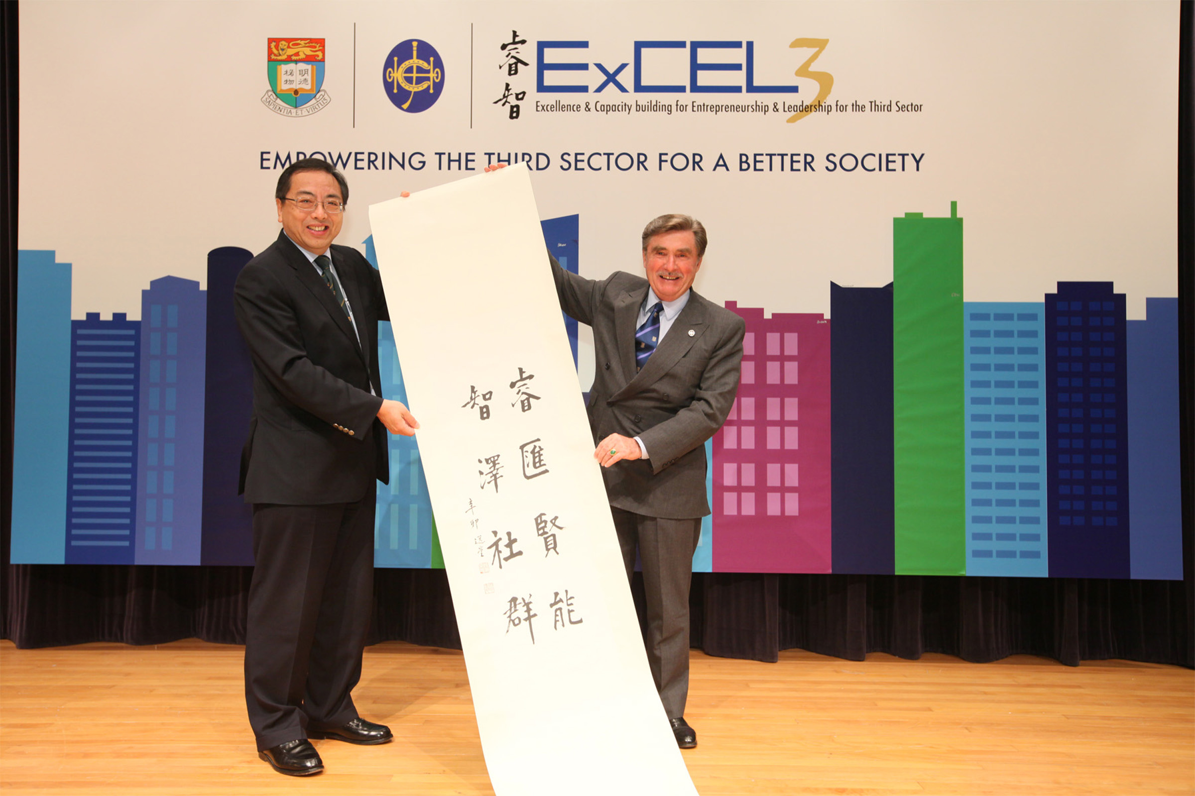 The Third Sector is crucial to social progress. Recently they have been faced with challenges due to the increasing complexity of the socio-economic and political environment, rising public expectations in governance and accountability, and the need for resource development and sustainability. Dr Leong Che-hung explained that ExCEL3, initially planned as a 5-year scheme, would draw from international expertise to develop various training programmes, public lectures and workshops to enhance the third sector's capacity in tackling the challenges. The support for EXCEL3 is part of Jockey Club's donation for HKU's Centennial Campus project, details of which will be announced later.