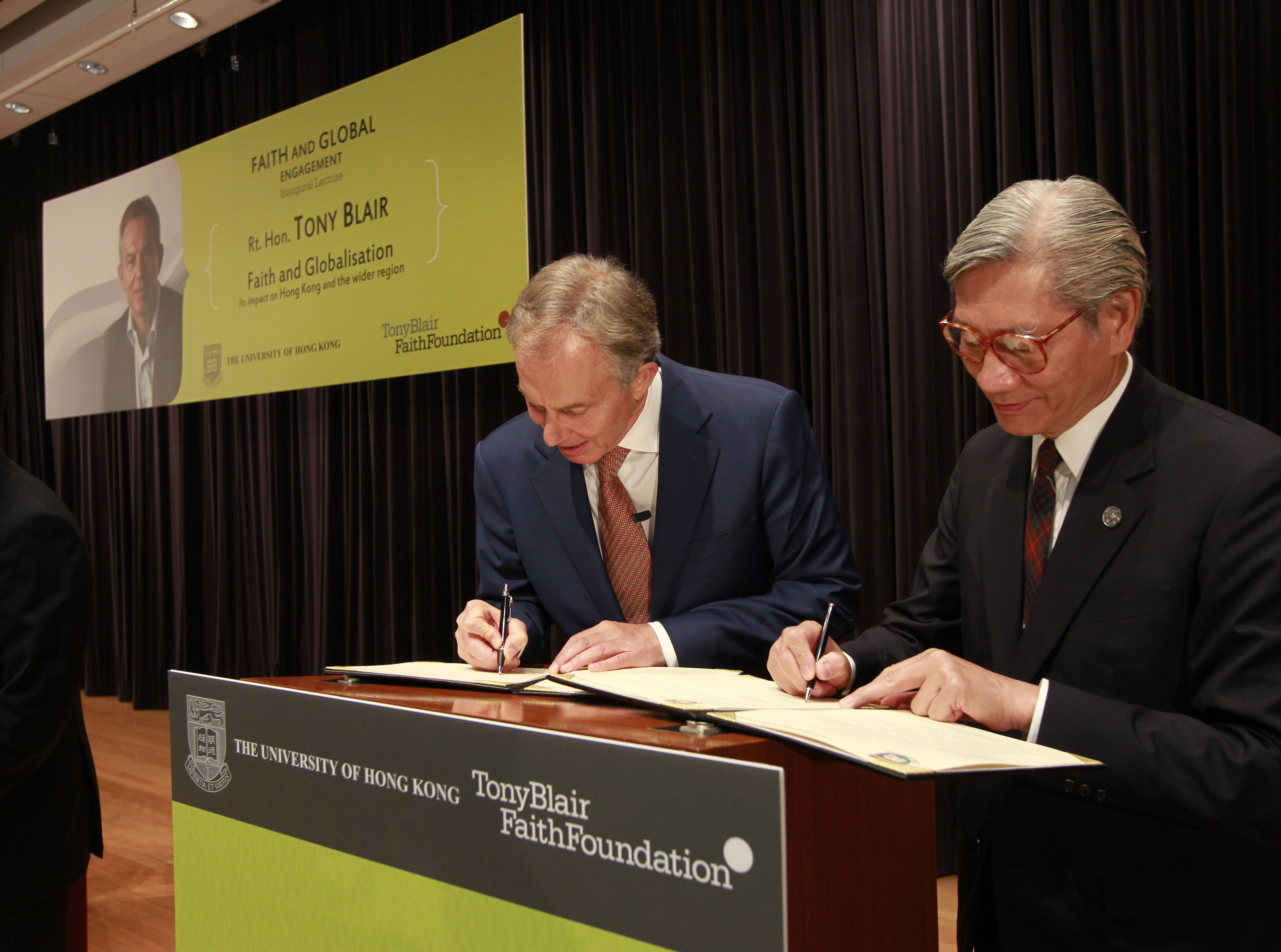 Following the lecture, Tony Blair officially signed a Memorandum of Understanding between the Tony Blair Faith Foundation and HKU.