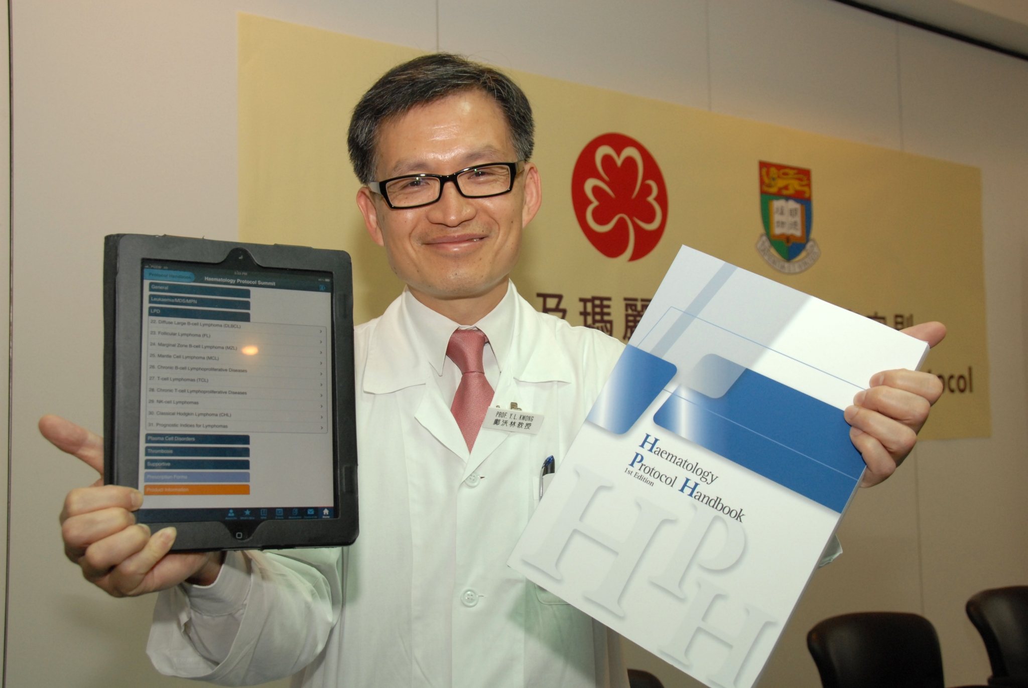 Blood cancers and diseases are very serious life-threatening disorders. Treatment of these patients is often urgent. Drugs for treating blood diseases are also toxic and complicated, requiring a lot of experience and expertise in their use. Therefore, it is very difficult for even specialists to manage these patients well. The Haematology Team of the Department of Medicine at The University of Hong Kong (HKU) Li Ka Shing Faculty of Medicine and Queen Mary Hospital (QMH) has developed a consensus protocol in the forms of printed books, iPhone/ iPad app and website to disseminate the most up-to-date treatment protocol and allow quick reference to drug dosages and administration. The free standardised protocol for blood cancers and diseases is provided. Doctors in Hong Kong will have a better picture of practices in haematology, so that different hospitals and doctors no longer need to adopt various approaches in handling blood diseases. The protocol marks a new model of medical practice in Hong Kong, which allows quick exchange of new knowledge and experience. The initiative will also increase the transparency of haematology practice in Hong Kong benefiting both the medical practitioners and patients.