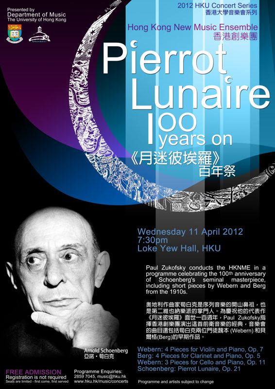 Paul Zukofsky conducts The Hong Kong New Music Ensemble in a programme celebrating the 100th anniversary of Schoenberg's seminal masterpiece, including short pieces by Webern and Berg from the 1910s.