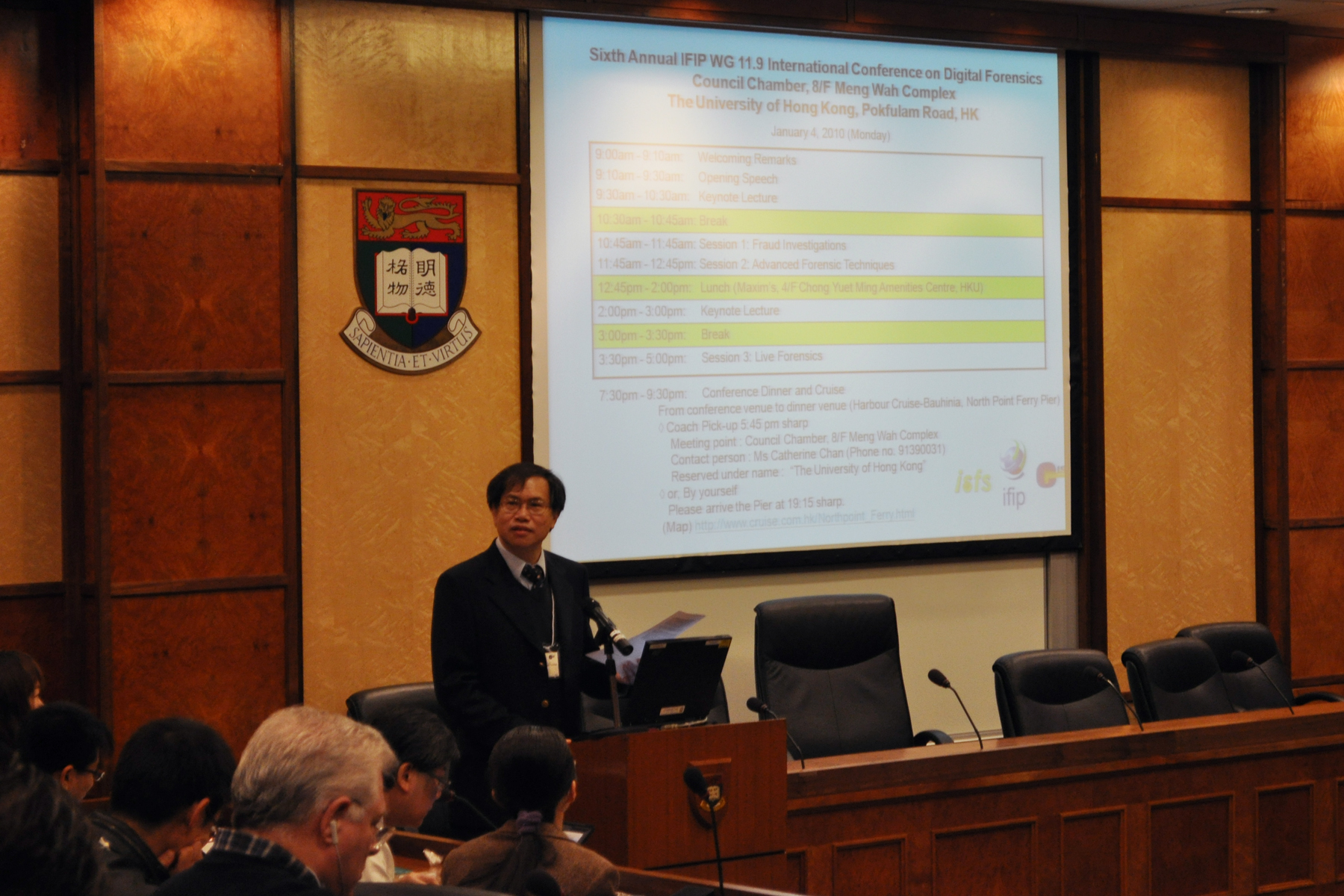 香港警方刑事助理處長杜振偉將於 2010年1月4日(星期一)的開幕會議上,以"香港電子犯罪和數碼取證"為題致辭。