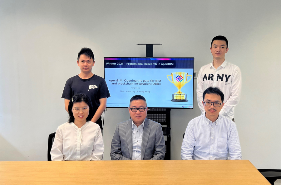 A team led by Professor Wilson Lu, Dr Frank Xue and Dr Jinying Xu at iLab of the Faculty of Architecture at the University of Hong Kong (HKU) is the sole winner in the “Professional Research” category of the buildingSMART International (bSI) Awards 2021, with the project “OpenBIM: Opening the gate for BIM and blockchain integration (OBBi)”. The results have been announced on October 7.
