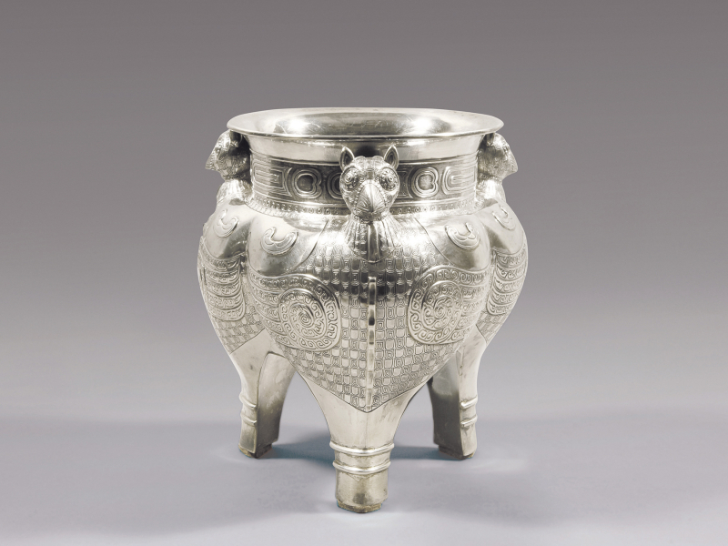 Celebrated today for their enduring beauty, early Chinese bronzes also include practical objects, such as cooking and storage vessels, which offer insight into both the cultures from which they developed, as well as more contemporary objects. Their ornate splendour and utilitarian features have noticeably influenced the fanciful modern sterling silver pieces, while the craftsmanship emphasises the long-practiced technique of casting and chasing. This level of refined detail exemplifies the quality of Chinese metalworking throughout the millennia.