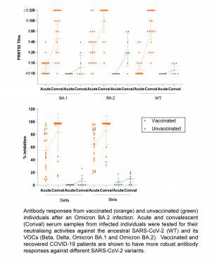 HKUMed-CU Medicine joint study shows that vaccinated individuals develop more robust and broadly reactive antibody responses against SARS-CoV-2 variants than the unvaccinated after an Omicron infection