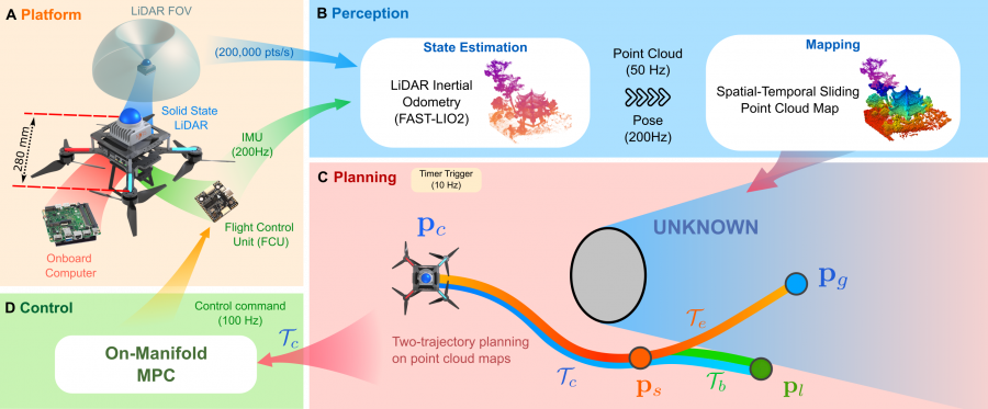 團隊開發新型無人機 SUPER LiDAR(Safety-Assured High-Speed Aerial Robot),能夠以超過每秒20公尺的速度飛行,並僅依靠機載感測器和運算能力避開細至2.5毫米的障礙物,例如電線或樹枝。SUPER機體輕巧,軸距僅280毫米,起飛重量為1.5公斤,展現出極高的靈活性,即使在夜間也能在茂密森林中穿梭,並巧妙地避開細小障礙物。